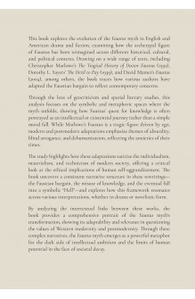 By analyzing the intertextual links between these works, the book provides a comprehensive portrait of the Faustus myth’s transformation, showing its adaptability and relevance in questioning the values of Western modernity and postmodernity. Through these complex narratives, the Faustus myth emerges as a powerful metaphor for the dark side of intellectual ambition and the limits of human potential in the face of societal decay.