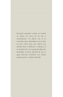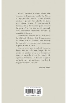 Adrian Ciocioman a selectat câteva teme recurente în fragmentele cărților lui Cioran – reprezentative, așadar, pentru filosofia acestuia – pe care le-a abordat în dublu sens: ținând seama de particularitățile fiecăreia, dar și de unitatea operei din care fac parte. Cele care structurează capitolele sunt: cunoașterea, Dumnezeu, moartea (și sinuciderea), iubirea. Discursul este croit în așa fel, încât să nu fie falsificată fidelitatea față de opera avută în vedere, dar cu condiția unei libertăți hermeneutice prin care cel care interpretează se pune pe sine în cauză. Cele mai importante contribuții ale acestei lucrări sunt de ordin metodologic. Tocmai acestea au condus, cred, la o interpretare inedită a operei lui Cioran în ambele sale segmente (românesc și francez, lingvistic vorbind), care, cred, va fi avută în vedere de exegeza cioraniană viitoare.